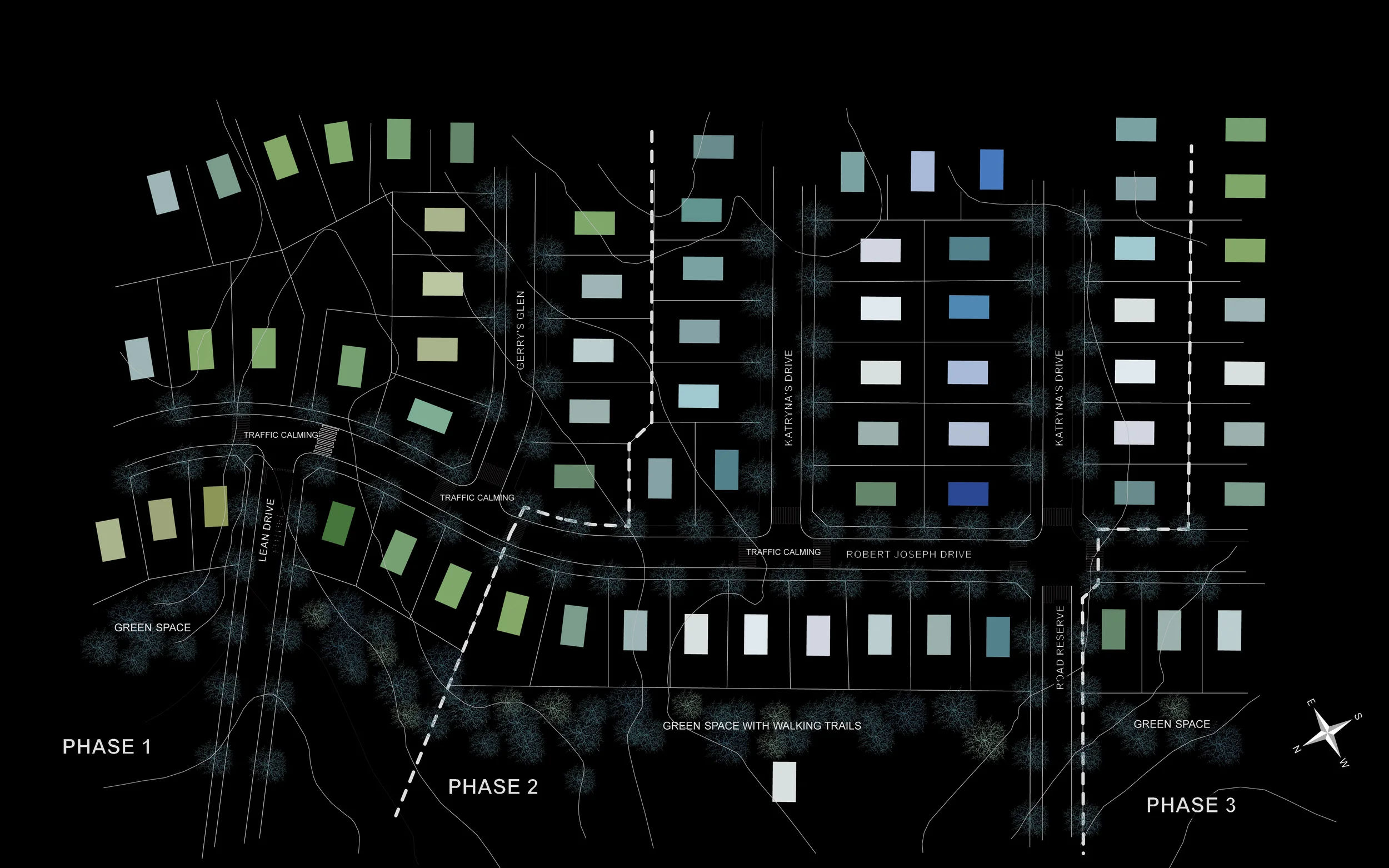 Das Gestaltungskonzept für ein Neubaugebiet mit hohem ökologischen Standard in Halifax, Kanada, setzt sich aus den Farben der Elegant Silver Pflanzenfamilie, sowie den Farben zweier impressionistischer Gemälden von Monet zusammen. Die Farben erzeugen in der gewählten Komposition Stimmungen, wie man sie aus den Fotos von Gregory Crewdson kennt.
