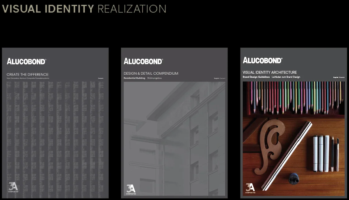 Die Aufgabe für 3aComposites war der Relaunch des gesamten Erscheinungsbildes des Unternehmens, vorrangig das Produkt Alucobond in allen Print- und Onlinepräsentationen.
